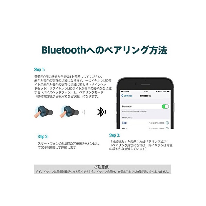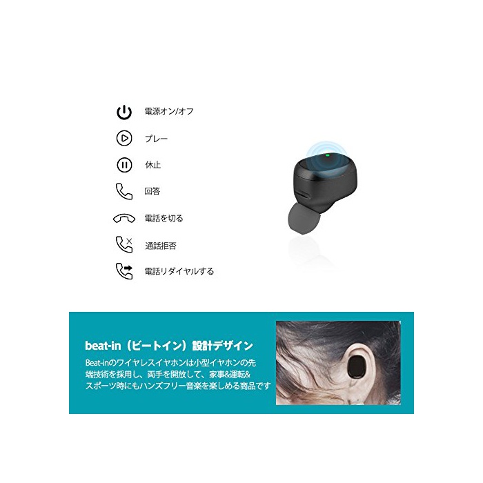 【BT4.2이어폰과 고음질】 Bluetooth4.2/CSR64210팁(칩)를 채용하고, 내장 된 마이크에 의해핸드프리의 통화가 가능합니다.또한 노이즈《갼세린구》기능을 탑재하고, 통신 거리10M이내에 고음질인 통화와 음악의 체험 하실 수 있습니다.원 버튼 설계 경량 소형 소유 편리합니다.충전식 수납 케이스 첨부 와 일본어 설명서 부착 iPhone Android 대응가.