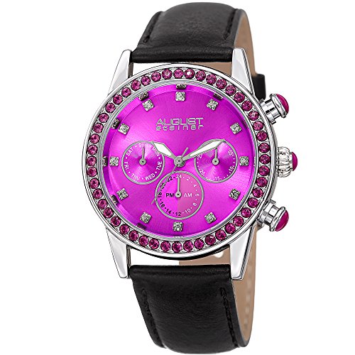-. Title : August Steiner Women's Quartz Stainless Steel and Leather Casual Watch, Color:Black (Model: AS8236PK)