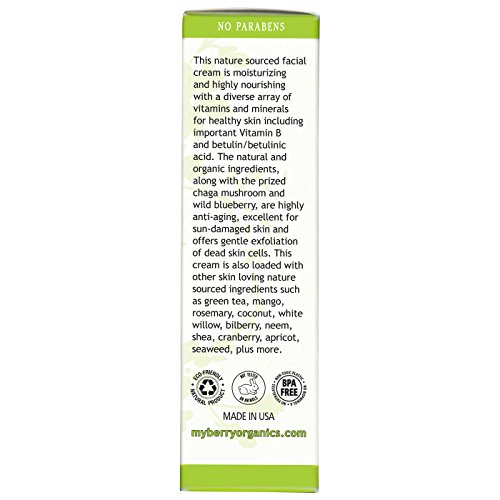 Wild Blueberry & Chaga Face Cream, With Organic Wild Blueberry & Maine Chaga Mushroom For Highest in Skin Nutrition