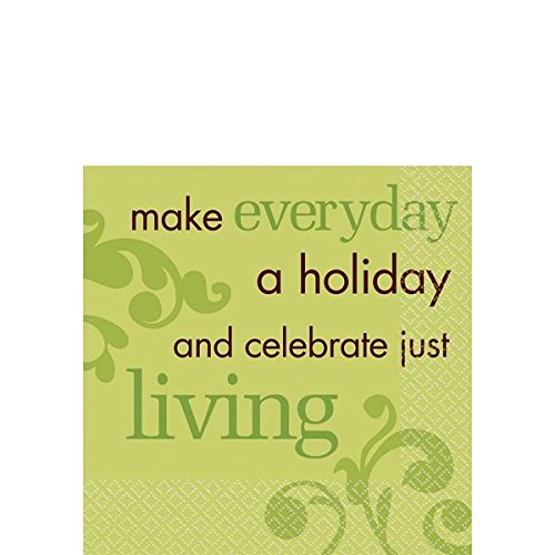Amscan Decorative Sweet Sentiment Party Beverage Paper Napkins (16 Pack), 5 x 5", Green