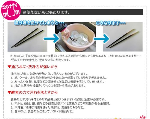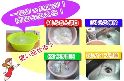 1本5役、洗浄、漂白、除菌、消臭、脱脂。酵素の力で汚れを落とすエコ洗浄。洗濯、掃除、食器洗いはもちろん、赤ちゃんの衣類や食器にも使用できます。