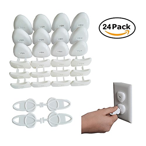 Baby Proofing Electrical Outlet Plug Covers( 12pcs 2phase ,12pcs 3phase,4 Keys, White)