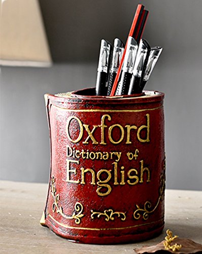 ZOSEN Retro Resin Books Pen Holder - Office Pencil Holder Creative Desk Decoration (Red)