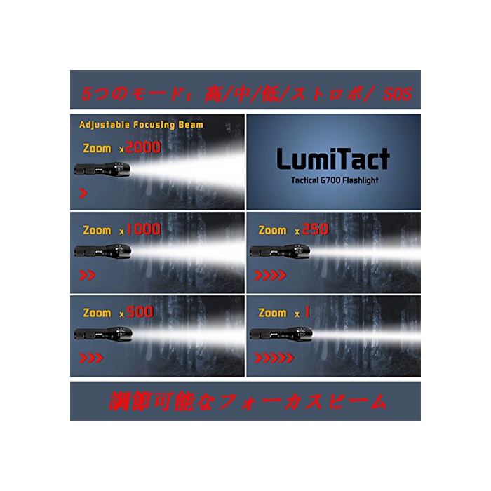 원본상품명: Lumitact G700 300m先まで照射 超高輝度 防水防災 CREE L2 LED 中電 ズム式5モド調光可能 2個のバッテリ