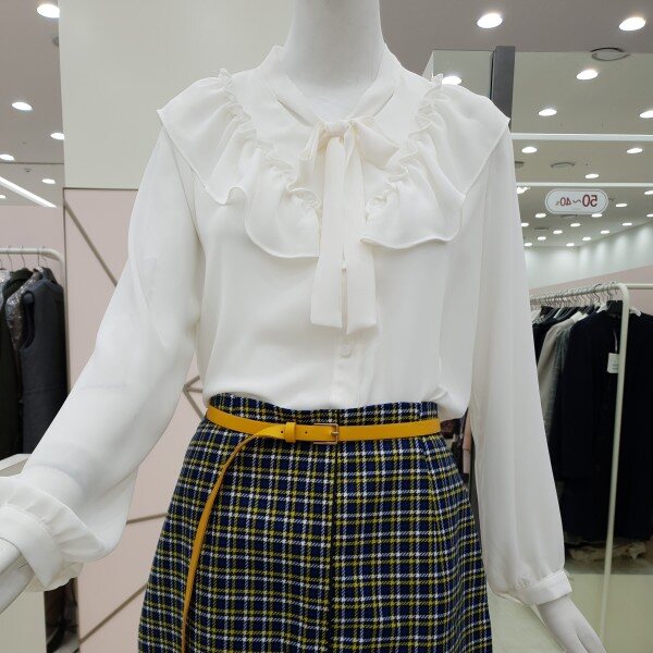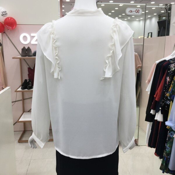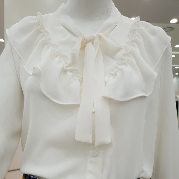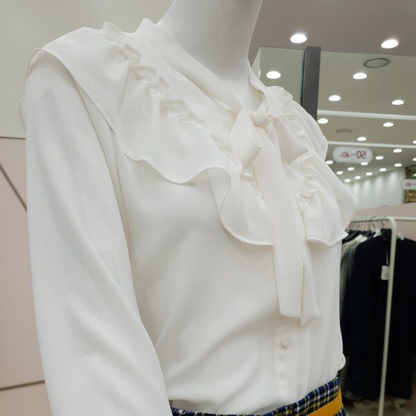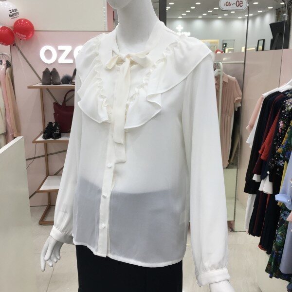 여성스러운 프릴 블라우스 소개해드려요.단품으로 입으시면 더욱 돋보이게 착용 가능한 아이템입니다.