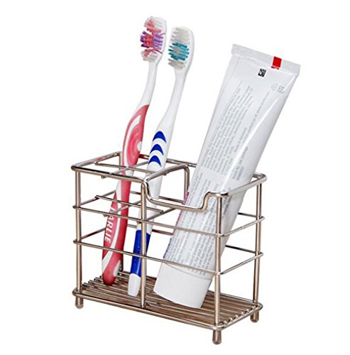 ISADENSER Stand Square Toothbrush Holder Organizer Stainless Steel, Mirror Polished Finish (Stand Holder)
