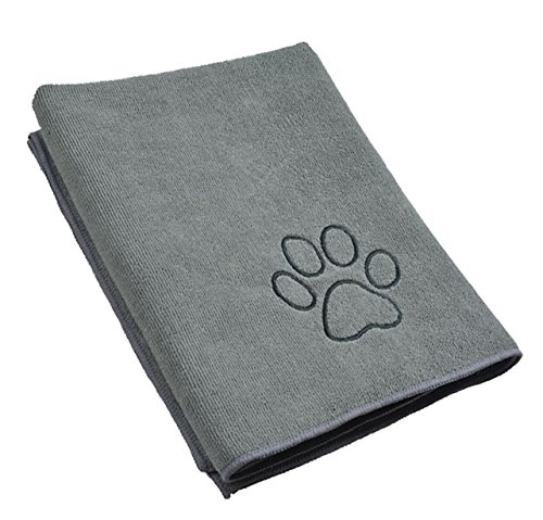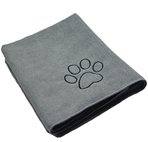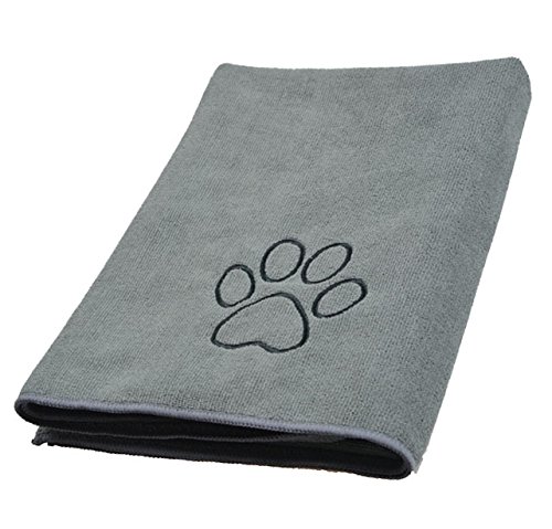 SINLAND Ultra Absorbent Microfiber Pet Towel with Embroidered Paw print