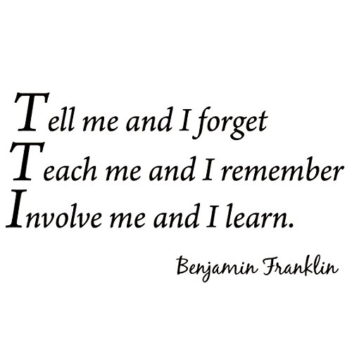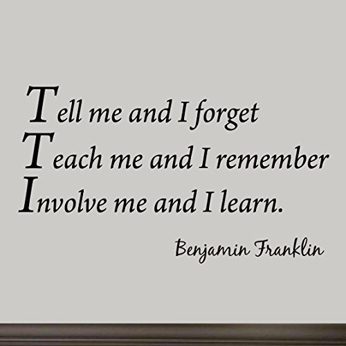 Tell Me and I Forget, Teach Me and I Remember, Involve Me and I Learn, Benjamin Franklin Vinyl Wall Art Home Decor Quote Wall Decals by VWAQ