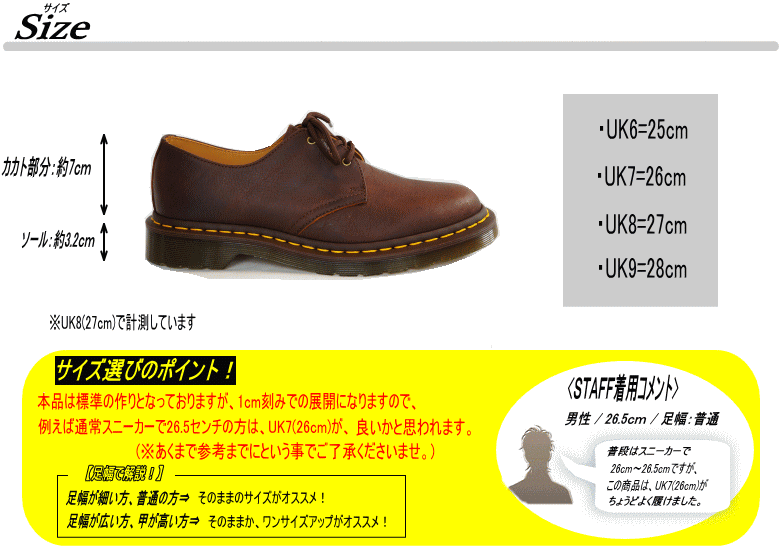 | 商品説明 | <BRAND STORY> 当初はワークブーツとしての用途が中心でしたが、スキンヘッズが目をつけ始めた事からミュージシャンの愛用者も増え始め,ビートルズ、ローリングストーンズなどの世界的アーティストに使用されることにより、ドクターマーチンは空前の大ブームとなりました。その後もパンクス・ロッカーズの定番として、ストリートカルチャーと密接に結びついたスタイルで絶大な支持を受けるなど、ファッションに欠かせない重要アイテムとして不動の地位を築いています。 <ITEM INFO> ・ 流行に左右されない定番なので、いつでもどこでも履いて行けます。 ・シンプルなデザインで、オールシーズン様々なファッションに合わせる事が出来ます。 ・ドクターマーチンソールと呼ばれる空気の層が組み込まれたアウトソールで、歩きやすく、機能的です。 ・ドクターマーチンの特徴ともいえる独特なステッチがアクセントになっています。 |