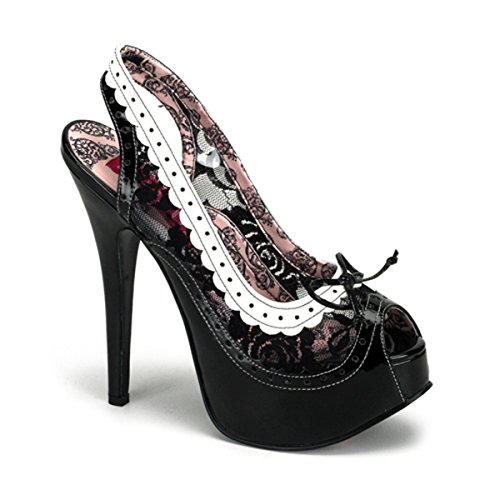 Womens Sexy Maid Costume Shoes Black Slingback Pumps 5 3/4 Inch Heel White Trim