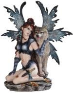 - Title : 12" Fairy Sitting and Petting with Wolf Sculpture