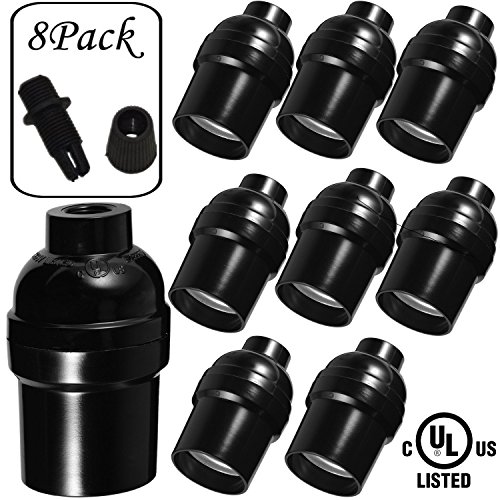 SerBion 8 Pack E26/E27 the US Standard Screw Black Light Socket, Edison Retro Pendant Lamp Holder For Lamp Socket And Fixture Replacement, 8 Pack