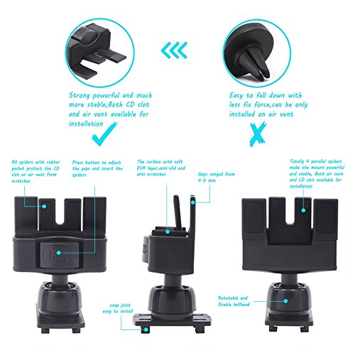 BOTH AIR VENT AND CD SLOT AVAILABLE:The mount can be fixed on both air vent and CD slot, adjustable side grip from 4.7"-7.8"(120-200 mm)