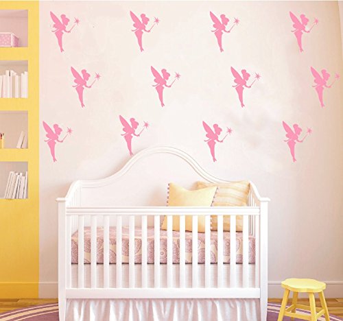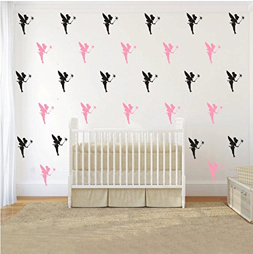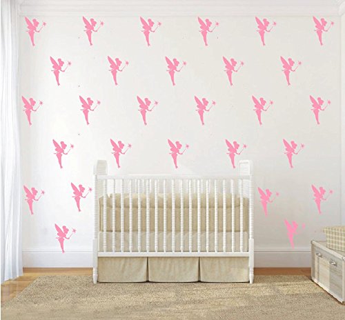 36 pieces/ Pack Fairies Wall Decal Kids Nursery Girls Room Decoration Fairy Wall Stickers Magic wizard Home Decor Party Wall Mural (SOFT PINK)