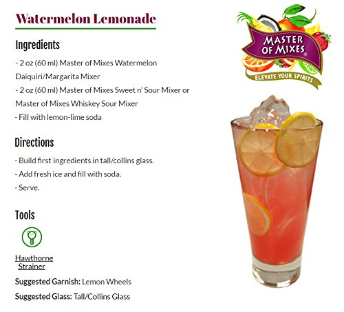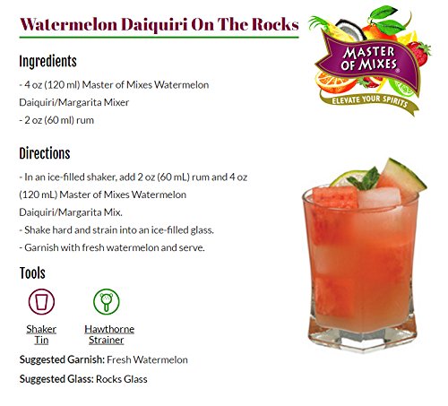 Master of Mixes Watermelon Daiquiri / Margarita Drink Mix, Ready To Use, 1 Liter Bottle (33.8 Fl Oz), Individually Boxed