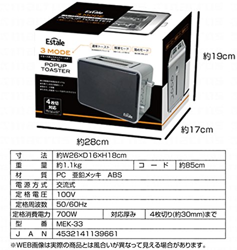 원본상품명: Estale 4枚切り 型 ポップアップ トスタ (通常、解凍、め 3モド 搭載) MEK-33