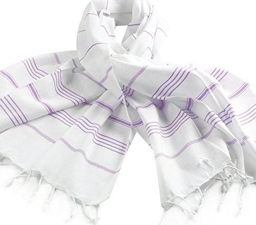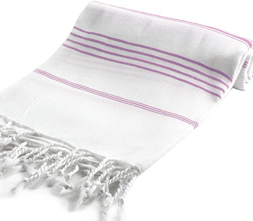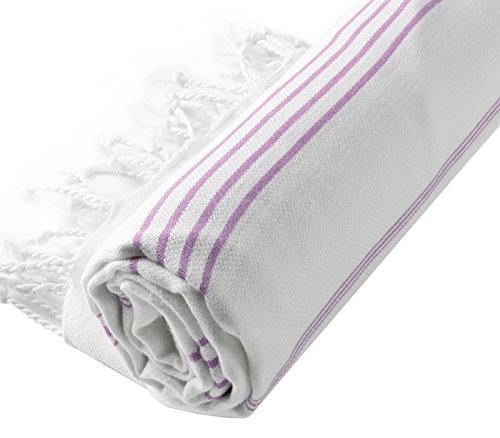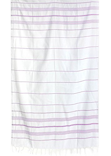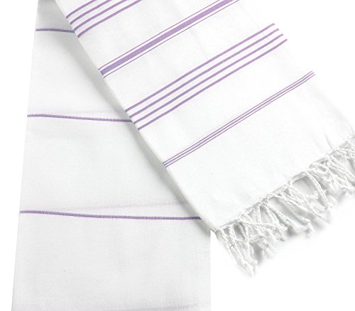 Hand Loomed Pestemal Striped Turkish Bath Towel 37x70 %100 CottonTM by Cacala White - Lilac