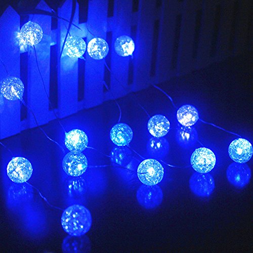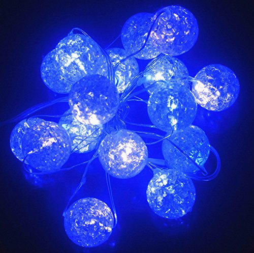 Ryham Battery Operated Crystal Ball String Lights Beaded Curtain Lights 16 LED 7.38ft 2.25M Fairy Globe Bubble Decor Lighting for Outdoor Indoor Patio Party Curtain Bedroom Christmas,Blue