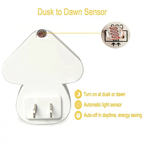 Plug-in LED Night Light With Dusk to Dawm Sensor, McWorks Mushroom Nite Light Wall Lamp, Warm White for Bedroom, Kitchen, Bathroom, 4-Pack