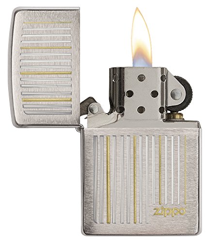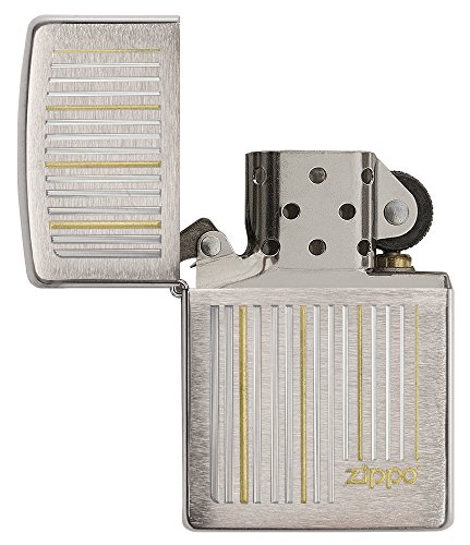 Zippo Vertical Lines Design Pocket Lighter, Brushed Chrome
