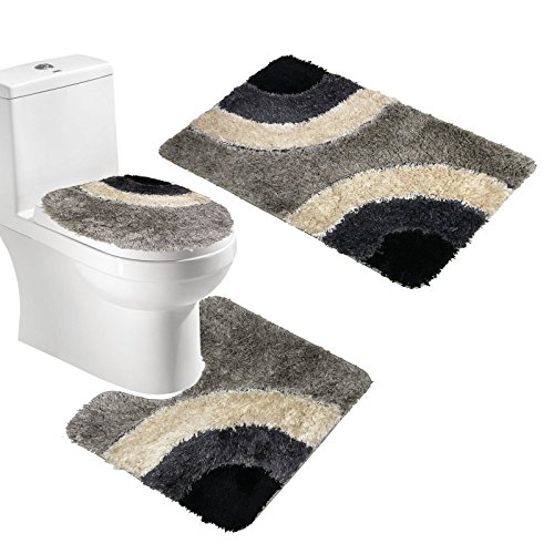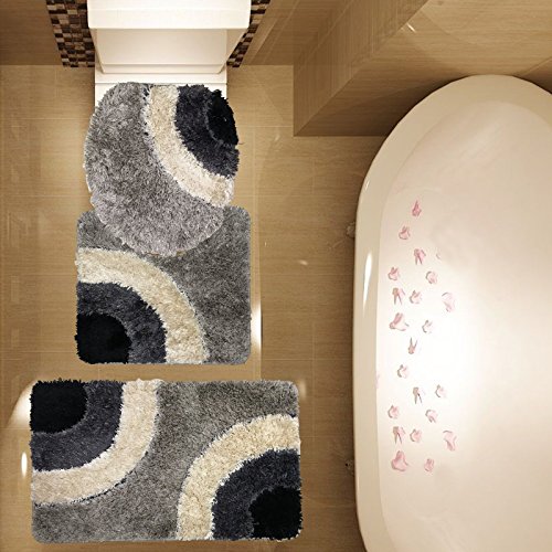 Amagical 3 Piece Bathroom Carpet Pedestal Lid Mat Toilet Cover Set Microfiber (Gray) by Amagical