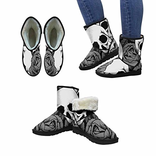 (InterestPrint)/Women's/Boots/DIRECT FROM USA/InterestPrint Women's Snow Boots With Roses and Skulls Unique Designed Comfort Winter Boots