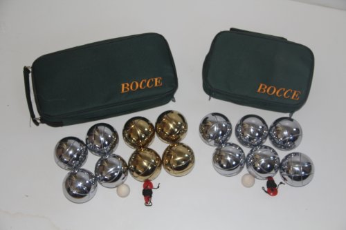 Studio : BuyBocceBalls Publisher : BuyBocceBalls Binding : Toy Product Description Bocce set includes 8 balls. 4 gold balls with 2 different striping patterns, 4 silver balls with 2 different striping patterns, a green bag, a wooden jack and a basic measuring device. Petanque set includes 6 silver balls with 2 different striping patterns, a green bag, a wooden jack and a basic measuring device. 0