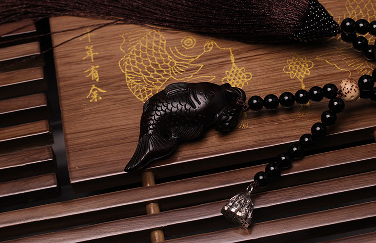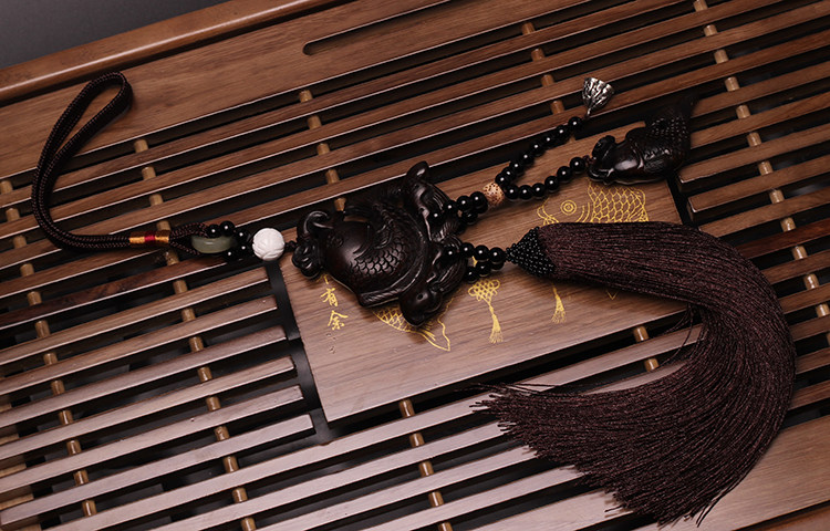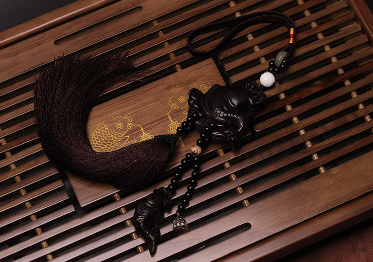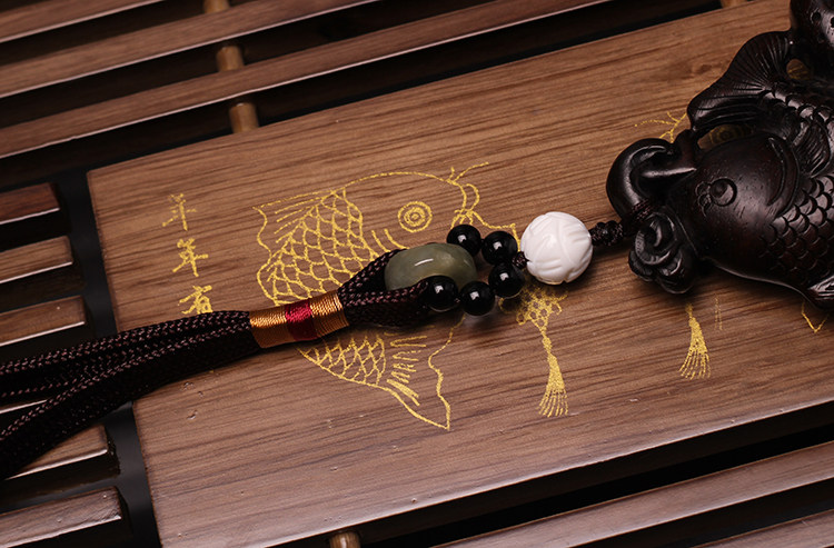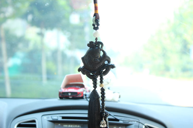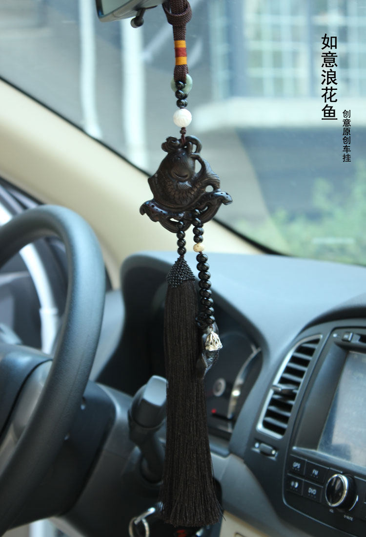 乌木浪花鱼汽车挂件 黑檀连年有余汽车内饰车挂件 如意鱼平安车饰