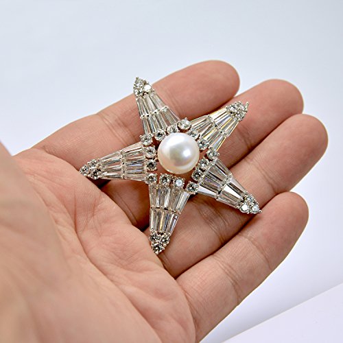 -. Title : Luxury Cultured Freshwater Pearl David Star Brooch, 2 x 2 Inches
