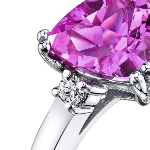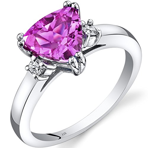 -. Title : 14K White Gold Created Pink Sapphire Diamond Ring Trillion Cut 2.50 Carat