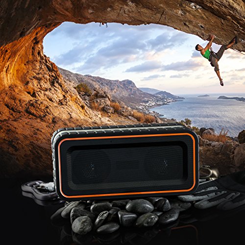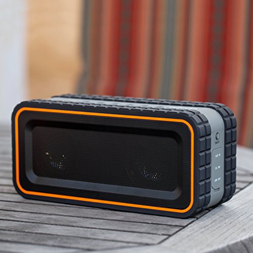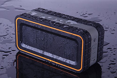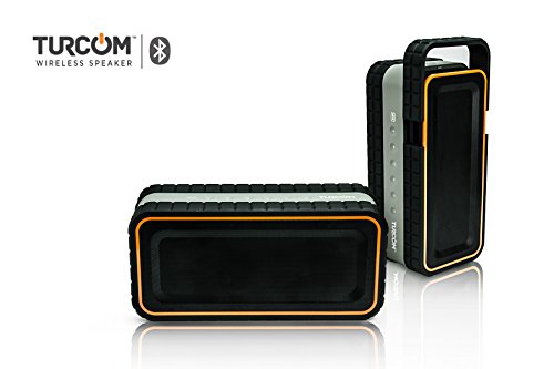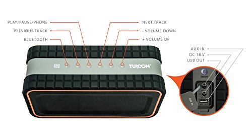 -. Feature : Turcom AcoustoShock outdoor speaker was built for portability and durability. Its red and compact design gives outdoor enthusiasts the ability to listen to music anywhere. This unique outdoor speaker is dust-proof, shock-proof, and has a water-proof rating of IPX-5, which means it can withstand a rain storm. / The speaker contains 2 drivers and 2 active sub-woofers to deliver 30 Watts of superior bass with crisp highs even when your music is playing at high volume levels. In addition to 2.2 Channel stereo sound output, it has the capability to answer calls with its integrated microphone. / The latest Bluetooth technology makes it easy and quick to connect smartphones, tablets, laptops or MP3 players to stream your music, with minimal power consumption. AcoustoShock can also be used with any non-Bluetooth device that uses a 3.5 mm auxiliary cable. / AcoustoShock is ideal for both the outdoors and indoors. With its water resistant, dust-proof, dirt-proof and shock-proof rating it is perfect for listening to your music around the house, shower, backyard, camp site, pool, lake, or the beach. Extendable handle makes it easy to carry it around on your trip, at your camp or backyard. / This speaker has a 8,000 mAh lithium ion rechargeable battery, allowing up to 7 hours of continuous music. The battery can also be used a portable power source for your cell phone and tablet through the USB out connection.