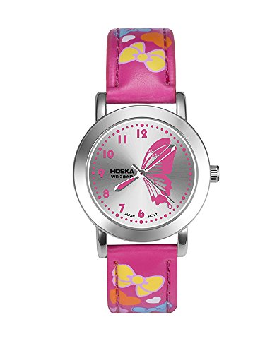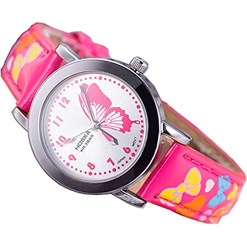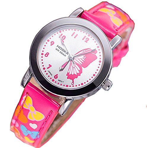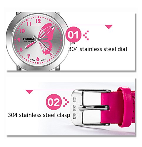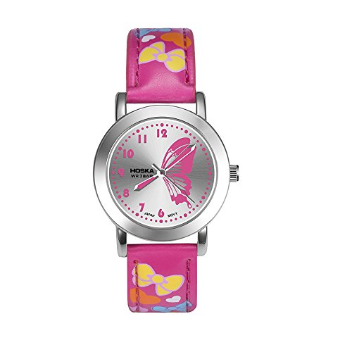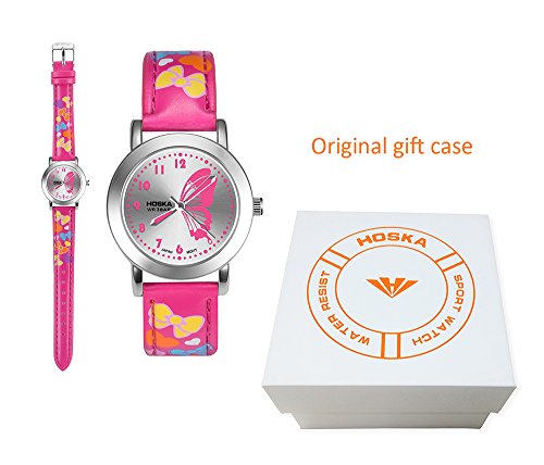 HOSKA child watch Primary school students waterproof night cute girl leather watch