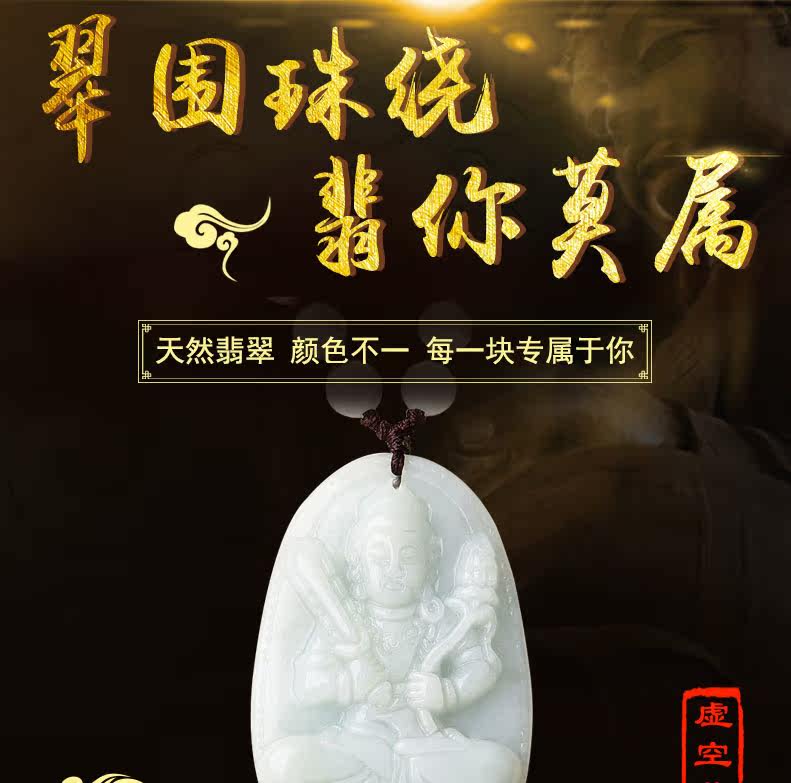开光翡翠玉虚空藏菩萨吊坠 生肖属牛虎本命佛男女士项链饰品挂件