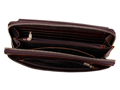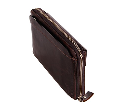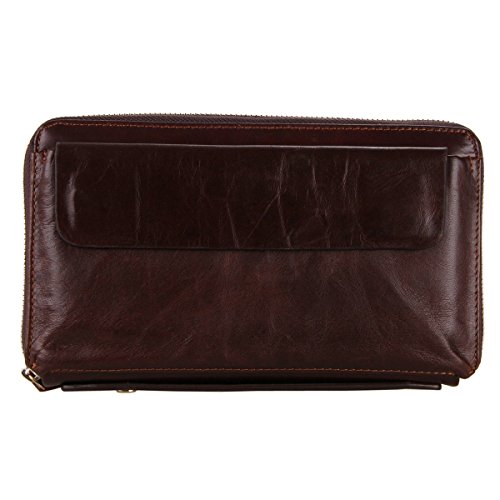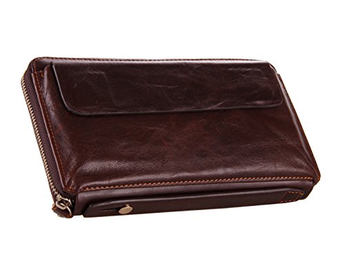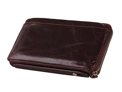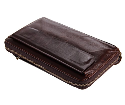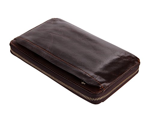-. Title : Itslife Men's Genuine Leather Zipper Clutch Bag Coffee Big Capacity Zipper Closure Wallet Organizer