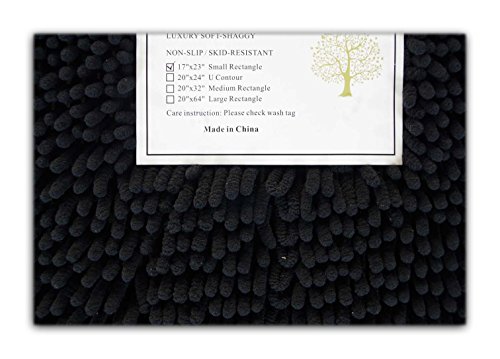 Verxii Home Deluxe Bath Mat Rug For Bathroom | Luxury Memory Foam No-Slip Soft Shaggy Bath Floor Mat Multiple Choices (1-PC Medium, Solid Black)