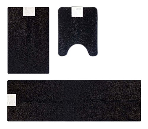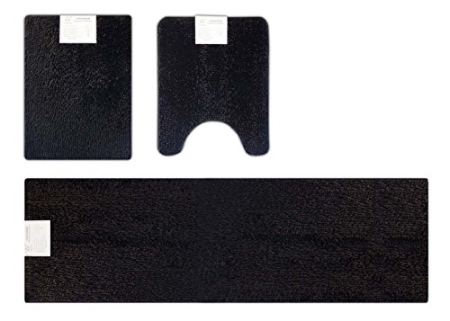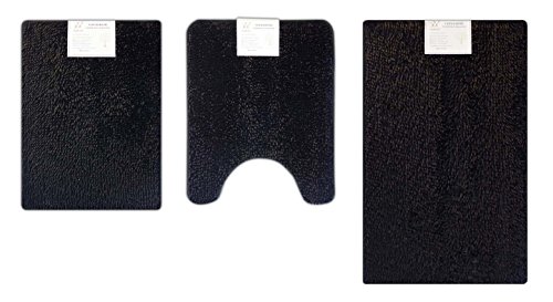 Verxii Home Deluxe Bath Mat Set | Memory Foam Luxury No-Slip | Soft Shaggy Bath Floor Mat Set Multiple Choice Options! (3 Pcs Combo B, Solid Black)