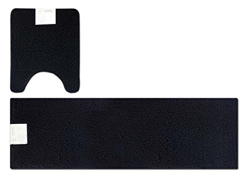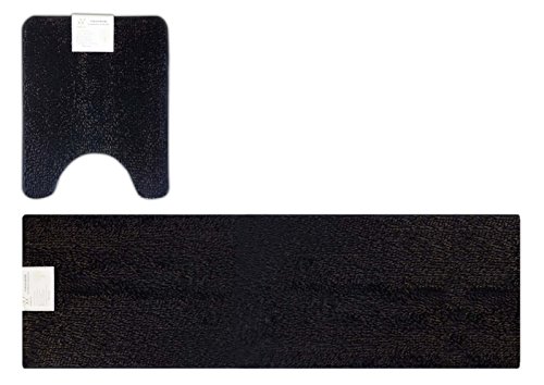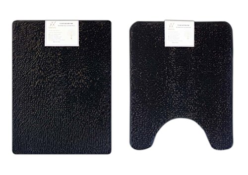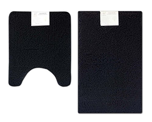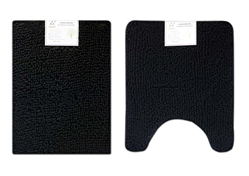 Verxii Home Deluxe Memory Foam Bath Mat Set | Non Slip Contour Shaggy Bathroom Floor Mat Set | Multiple Choices (2-PCS Combo E, Solid Black)
