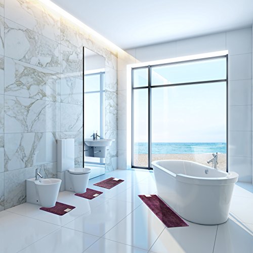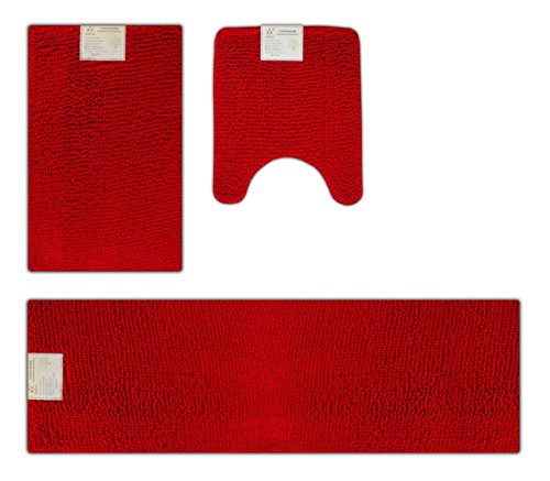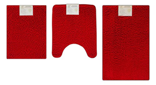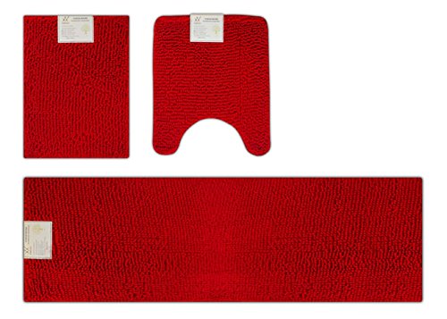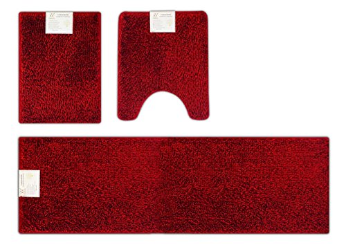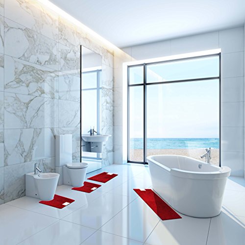 Verxii Home Luxury No-Slip Soft Shaggy Bath Floor Mat Set Multiple Choice (3 Pcs Combo A, Solid Red)