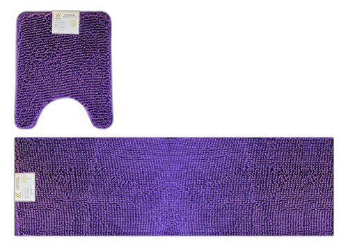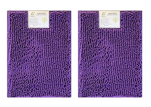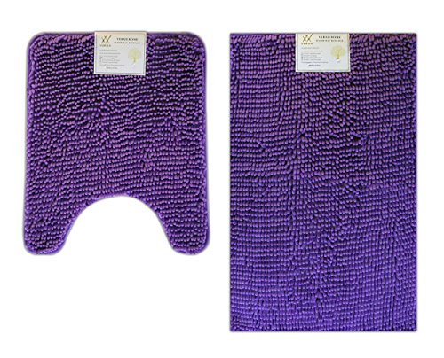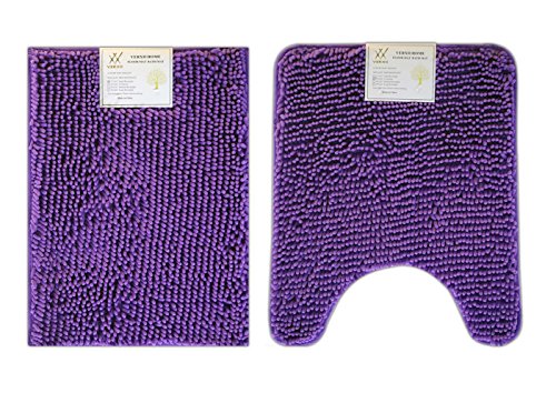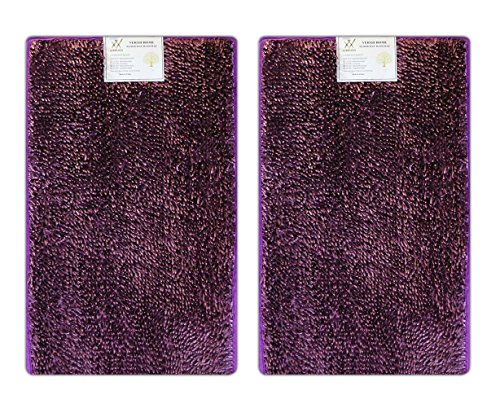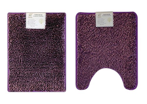 Verxii Home Luxury No-Slip Soft Shaggy Bath Floor Mat Set Multiple Choice (2 Pcs Combo A, Solid Purple)