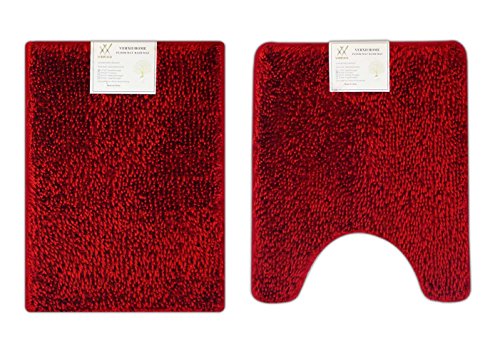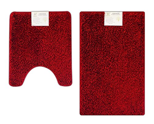 Verxii Home Memory Foam Luxury Bath Mat | Non Slip Soft Shaggy Bath Floor Rug Set | Multiple Choice (2-PCS Combo C, Solid Red)