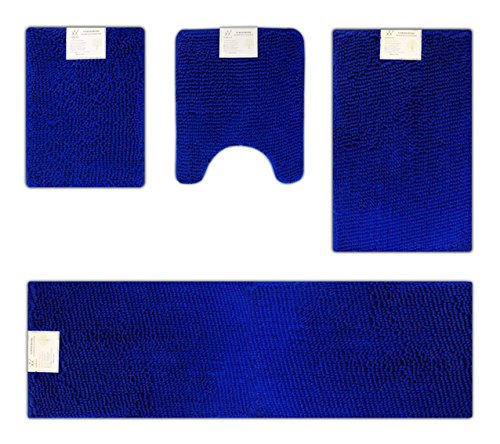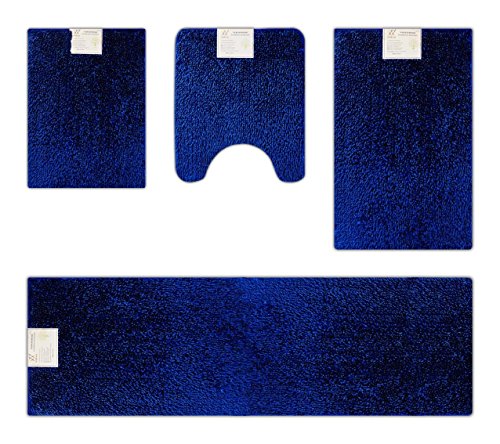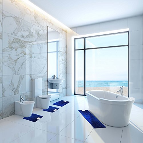 Verxii Home Deluxe Bath Mat Rug Set For Bathroom | Luxury Memory Foam No-Slip Soft Shaggy Bath Floor Mat Set | Multiple Choice (4-PCS Combo, Solid Blue)