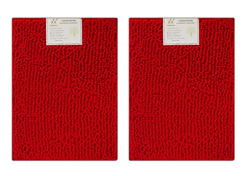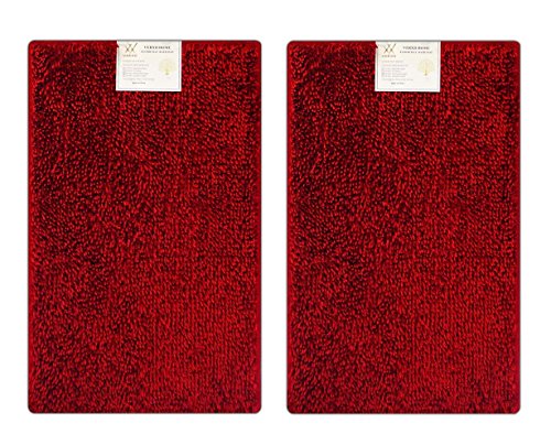 Verxii Home Memory Foam Luxury | No-Slip Soft Shaggy Bath Floor Mat Set | Multiple Choice (2-PCS Combo D, Bright Red))