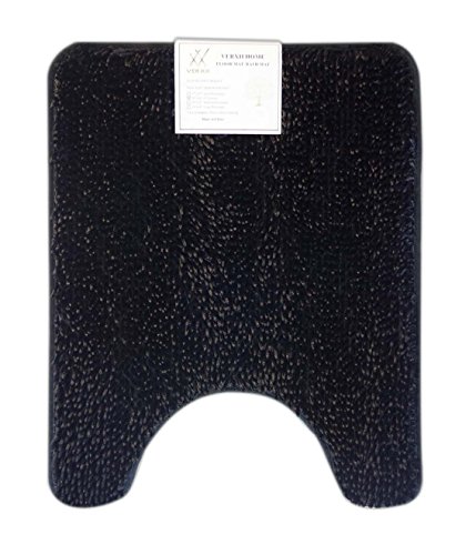 Verxii Home Memory Foam Luxury | No-Slip Soft Shaggy Bath Floor Mat Set | Multiple Choice (1-PC U-Shaped, Bright Black)))