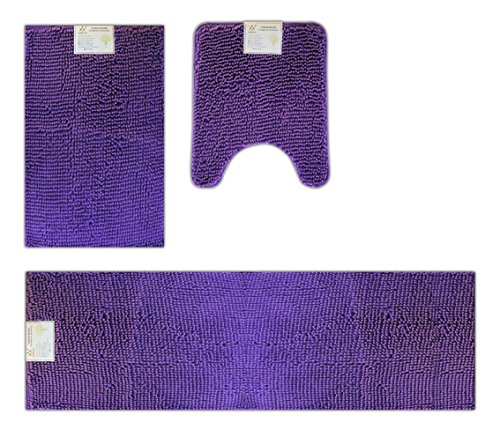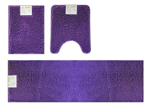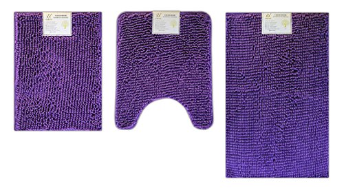 Verxii Home Memory Foam Luxury | No-Slip Soft Shaggy Bath Floor Mat Set | Multiple Choice (3-PCS Combo B, Solid Purple))