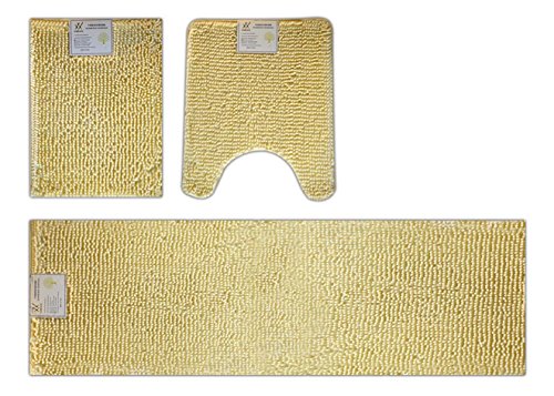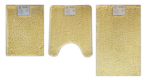 Verxii Home Bath Mat Set for Bathroom | Luxury Memory Foam Non Slip Soft Shaggy Bath Floor Mat Set | Multiple Choice (3-PCS Combo B, Bright Gold))