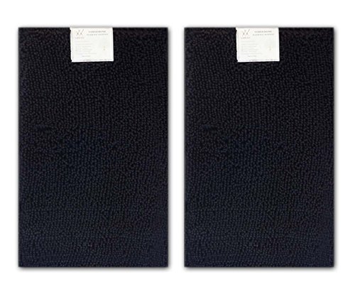 Verxii Home Memory Foam Luxury No-Slip Soft Shaggy Bath Floor Mat Set Multiple Choice (2 Pcs Combo B, Solid Black)