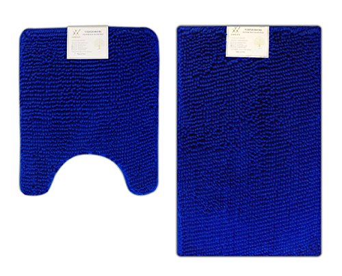 Verxii Home Luxury Bath Mat Rug Set For Bathroom | Memory Foam No-Slip Extra Soft Contour Multiple Choice (2-PCS Combo E, Bright Blue)