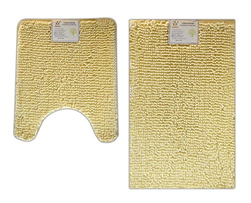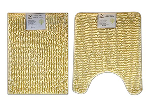 Verxii Home Memory Foam Luxury | No-Slip Soft Shaggy Bath Floor Mat Set | Multiple Choice (2-PCS Combo C, Bright Gold))
