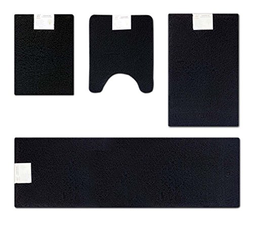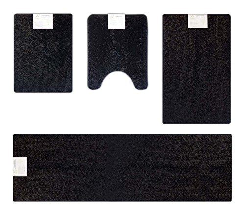 Verxii Home Memory Foam Luxury | No-Slip Soft Shaggy Bath Floor Mat Set | Multiple Choice (4-PCS Combo, Solid Black))