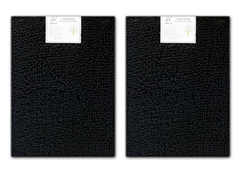 Verxii Home Deluxe Bath Mat Memory Foam | Luxury No-Slip Soft Shaggy Bath Floor Mat Set Multiple Choices (2-PCS Combo A, Bright Black)